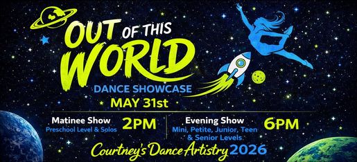 Our Annual Spring Showcase celebrates our dancers’ growth from September through May. The show features two performances—matinee for our youngest dancers and evening for our older levels—brought to life with a fun, creative theme. Every dancer receives a trophy, with special awards including our Miss Dance title.